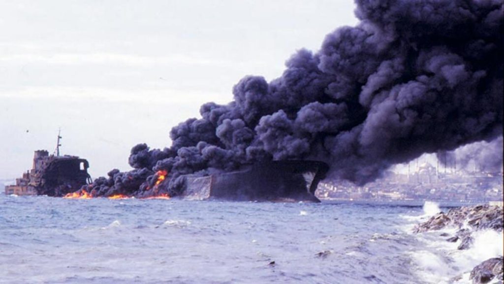 At 5:30 in the morning, the “Independenta” tanker loaded with 95 thousand tons of crude oil from Libya collided with the Greek dry cargo ship “Evriali” 800 meters off the Haydarpaşa station.